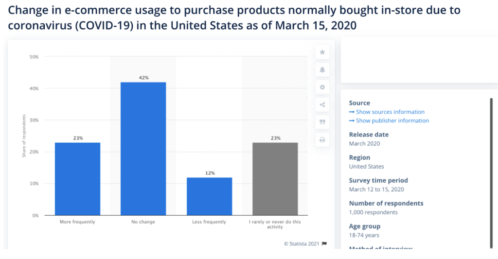 When the pandemic first hit, there was a surge in consumer spending in China and the United States, as many were stockpiling food and necessities. The Statistica Research Department published a study on spending habits in the United States during the pandemic which showed over 47% of American consumers reduced their in-store spending and over 20% increased their online purchases during the week. Since 2020, retailers have had to drastically change their behavior to fit a new type of customer experience expectation and comply with health and safety regulations. This includes mask wearing, ensuring physical distancing, regulating the number of employees and customers allowed on site, implementing contactless transactions, and offering more self-service options. According to the Harvard Business Review, brick-and-mortar stores have had to adapt and create an “even more extraordinary experience” for those visiting stores since COVID-19 began. Other retailers have focused on online shopping by increasing and improving e-commerce experiences for customers.